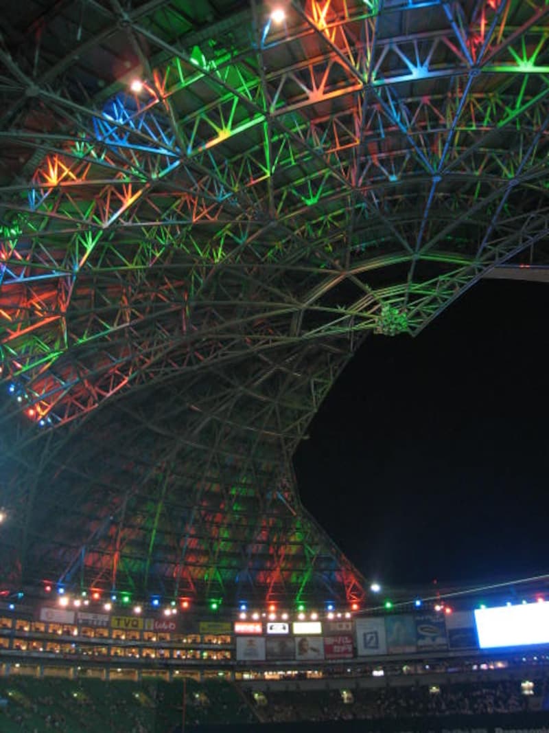 | 福岡ドーム内部。ホークス勝利の後、ドーム内で花火、そしてルーフショー。 |