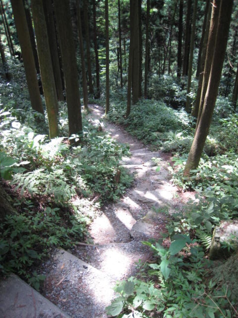 | 車道から滝へ続く坂道。この下に目的の花乱の滝が。 |