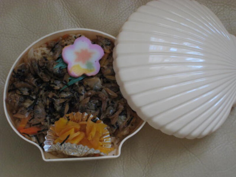 | 今回購入したあさりめし(熊本県)。ご飯の上にびっしりとのったあさり。食べ応え充分。 |