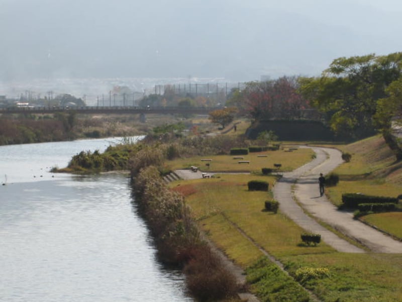 | 室見川河畔公園。柔らかな光りの中を散歩するには絶好の場所。 |