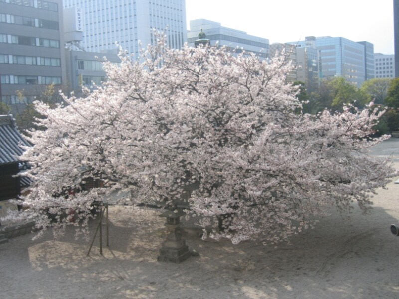 最後にガイドオススメの桜を。昨年の特集記事でもご紹介しましたが、なんと云っても博多区御供所町にある東長寺境内の大桜。博多駅まで約500mtという都会の真ん中、ビルが建ち並ぶその一角にその大桜は今年も立派に幹を中心に枝を四方に広げ、桜の息吹が花開く時を待っています。