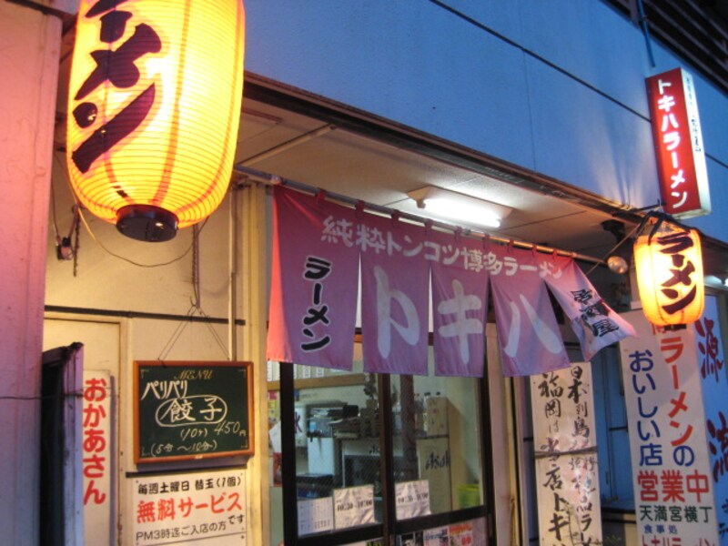 あっさりしたラーメン(\470)が名物のトキハ。通り入り口には看板が出ていてすぐ分かると思います。豚骨だけでとったスープは全然しつこくなく後味すっきり。