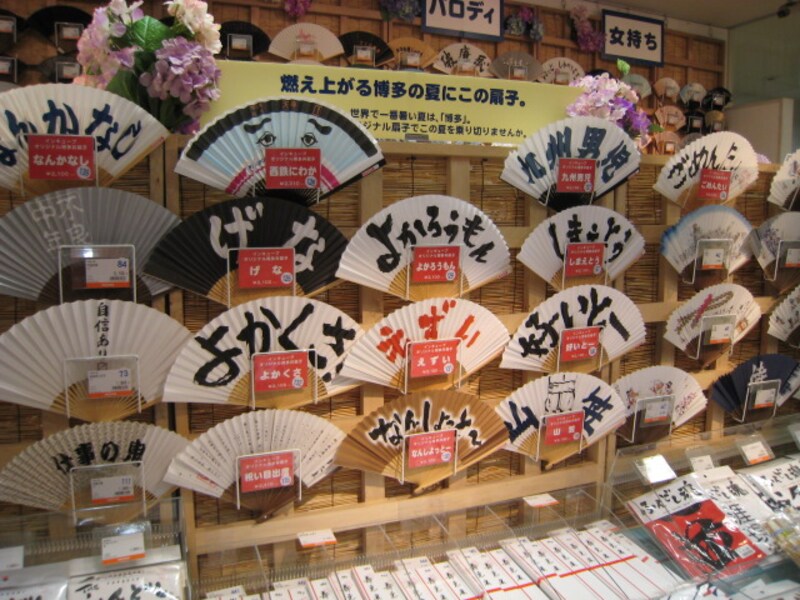 それと博多弁を書いてある扇子も面白い土産品。これからの季節、扇子を持っていると重宝するので喜ばれる土産品と思います。私の1つ、買ってしましました。持っていると注目の的になります。