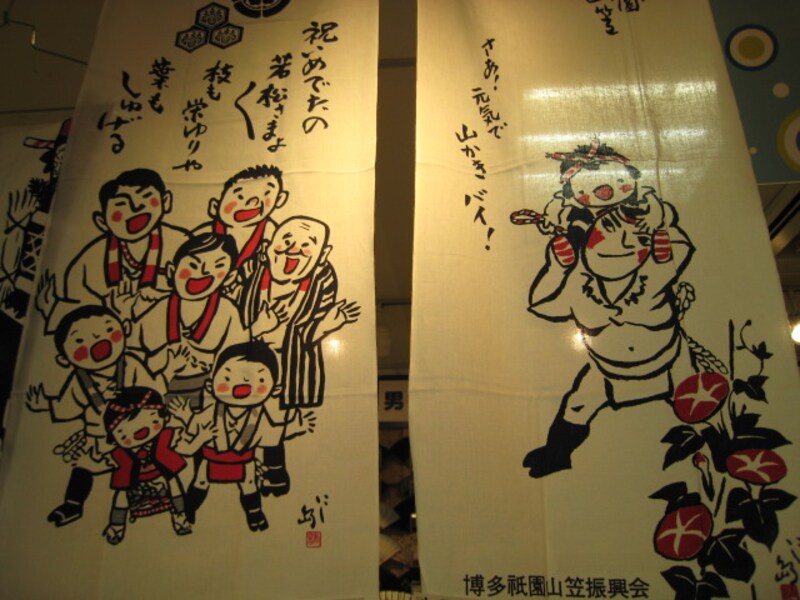 | 博多祗園山笠の手ぬぐい(700円~)。可愛らしい図柄で金額も手頃なのでお土産に最適。 |