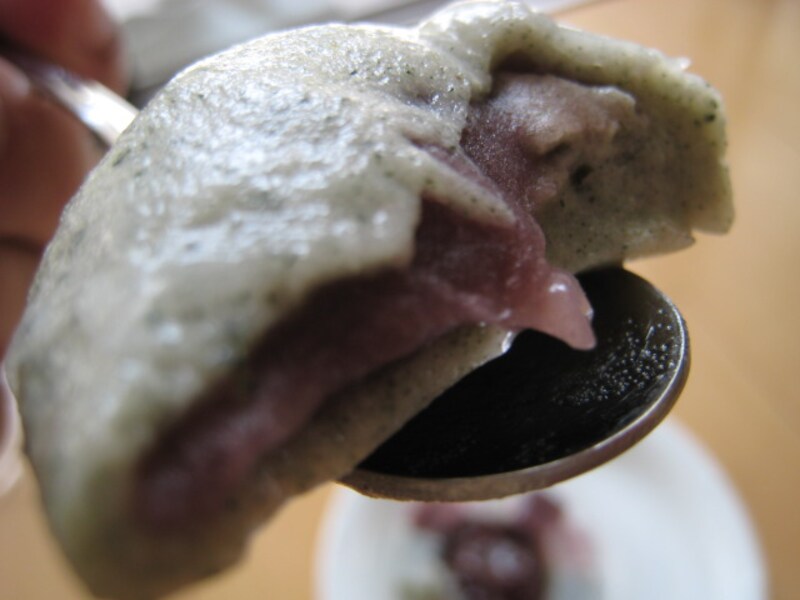 | 麩まんじゅう。甘さを抑えたあんことの相性は絶妙。モチモチ感が口の中で踊ります。 |