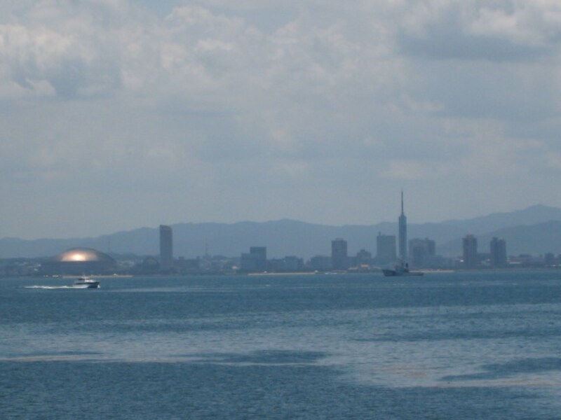 | 志賀島サイドから見た福岡市内方面。ドームに福岡タワーを見ることが出来ます。 |