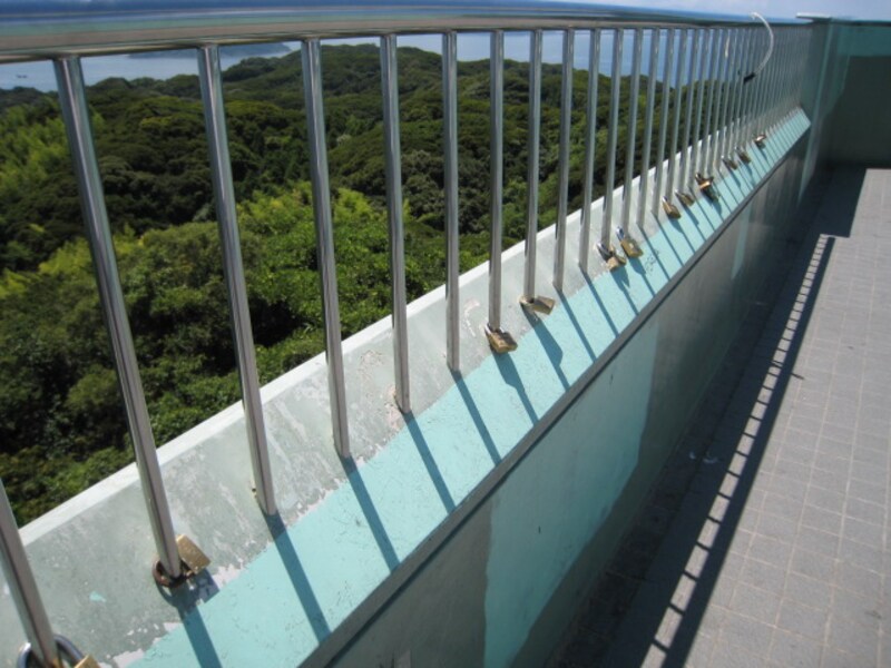 そんな潮見台ですが、展望台の頂上にはカップルが恋愛成就を祈ってか、鍵が柵に掛けられています。どこかの展望台(テレビ塔)でも同じ光景を見ることがありますが、ここ福岡でも恋人達の恋愛スポットとして志賀島の潮見台が熱い注目を集めているようです!?