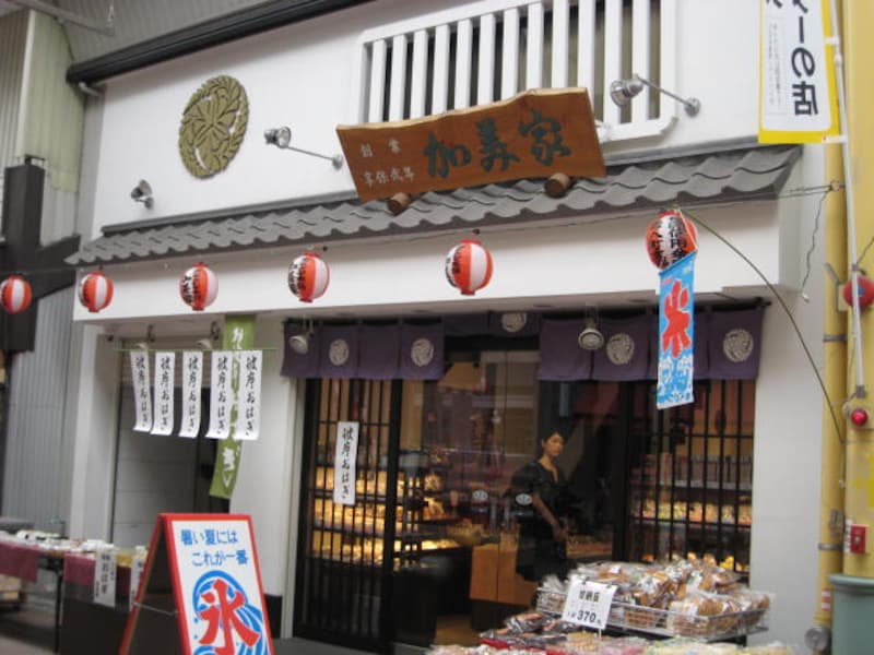 創業享保年間で300年以上の歴史を有し、黒田藩御用菓子処だった「加美家」。店内奥には喫茶コーナーもありゆっくりとくつろげるところです。ホークス応援菓「鷹富三笠」もありホークスファンならご賞味あれ。