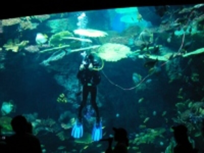 | 水槽の前にはベンチもあり、のんびり魚を眺めることができる |