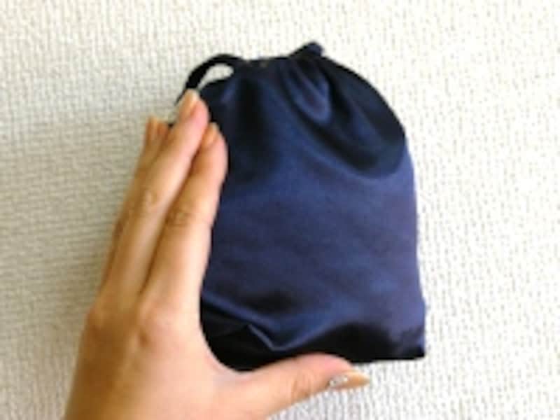| 巾着袋に入れるとこんなにコンパクトに。まさに旅行カバンの隙間サイズ! |