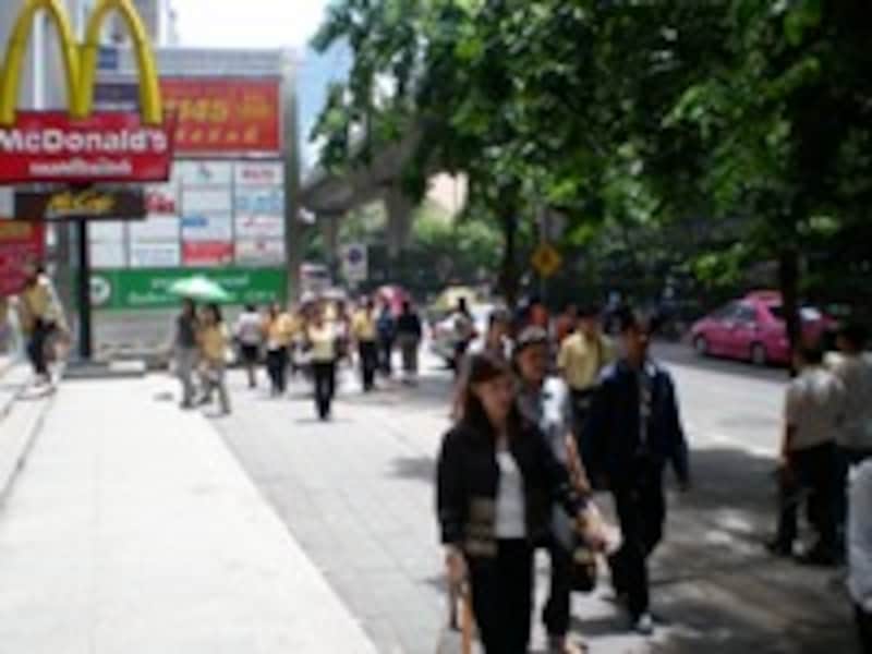 | シーロム通りには市場だけではなく、ファーストフードやカフェ、デパートなども多い |