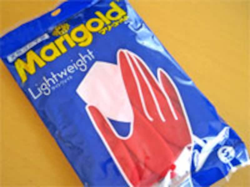 | 画像は真っ赤なゴム手袋。ピンクなどのパステルカラーより、男性がとっつきやすいかも。 |