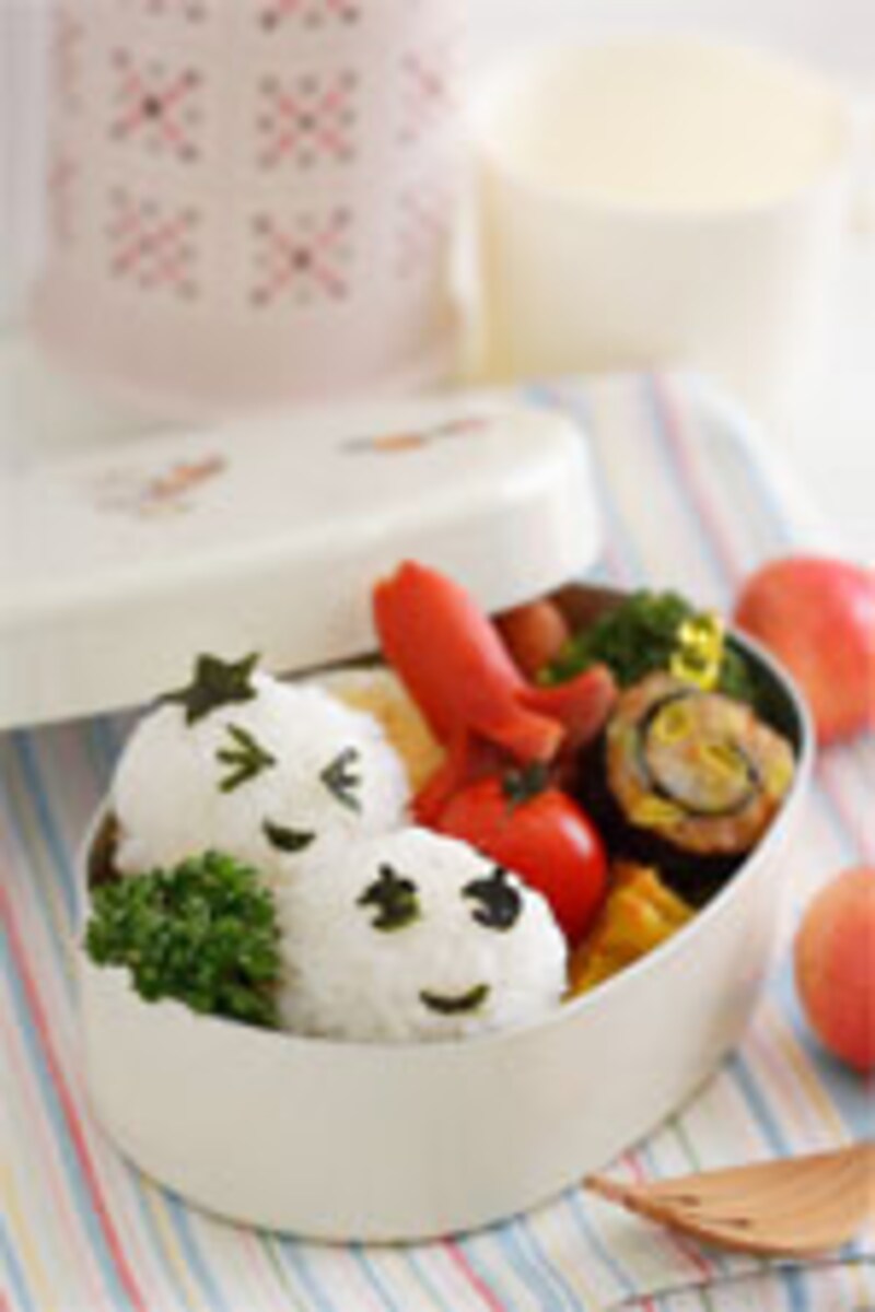 | 画像は「にこにこパンチ」という海苔用型抜きで作ったおにぎり。子どもが喜びそう! |