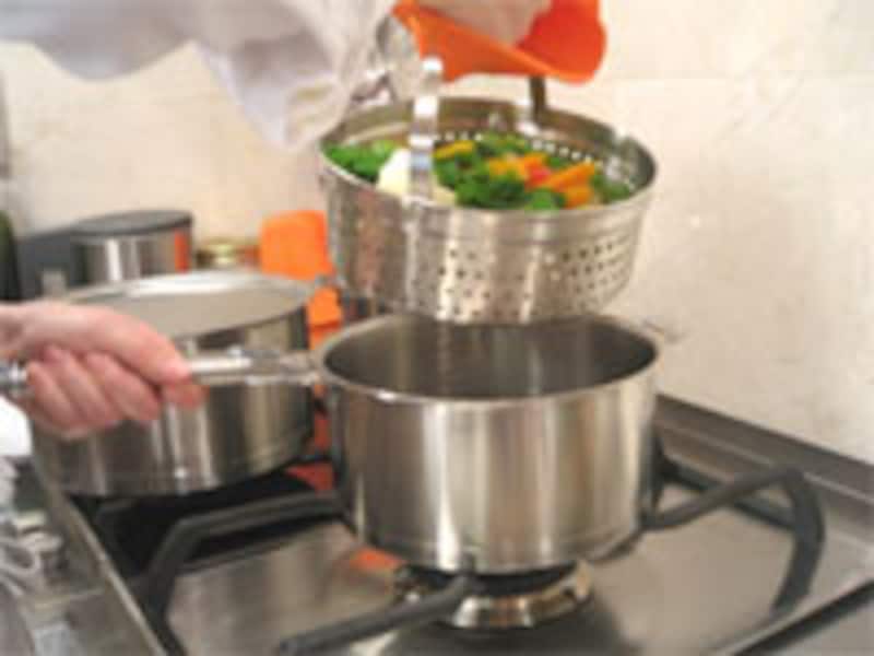 | クッキングバスケットで、蒸し野菜も気軽に。 |