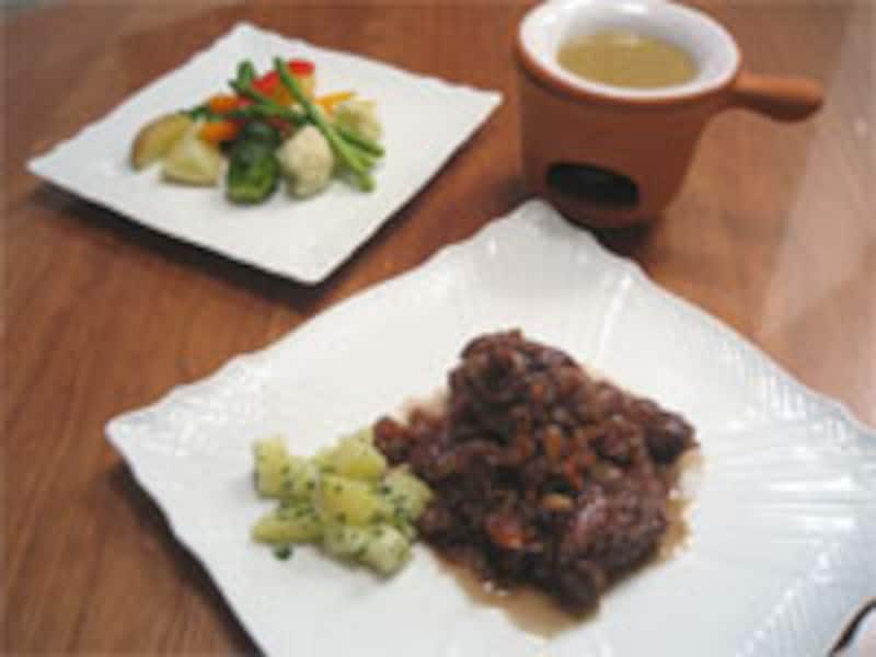 | 「鶏肉のキャンティ風」「バーニャカウダ」の完成画像。味のほうももちろん完璧!でした。 |