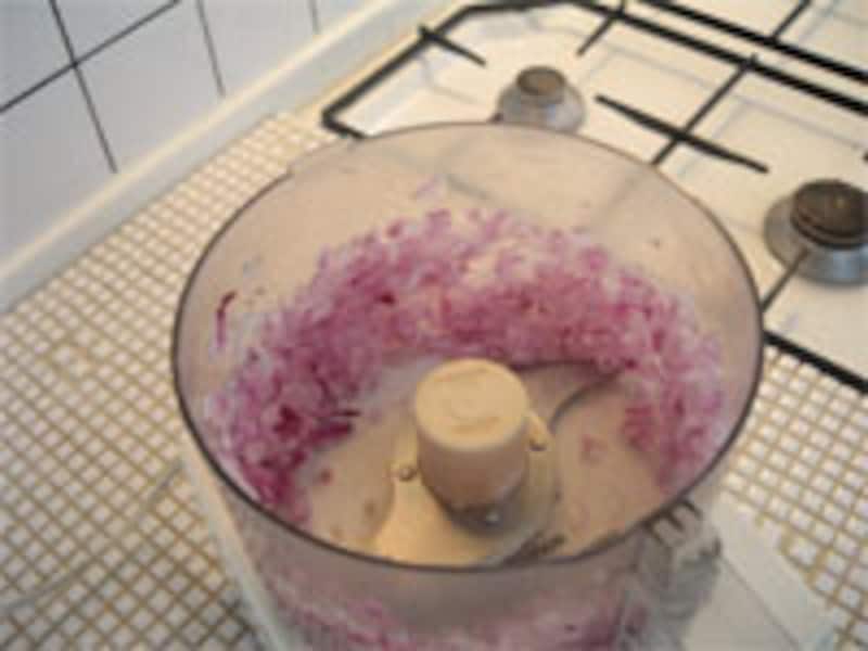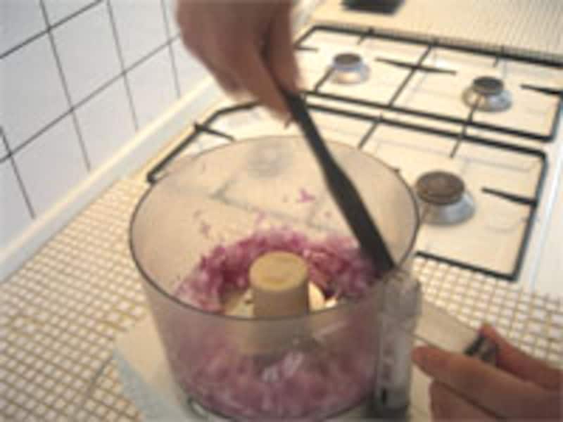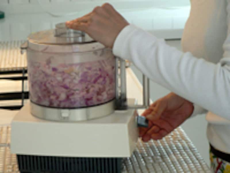 | あっという間にみじん切りが完了。手作業ではとてもこうはいきません。 |