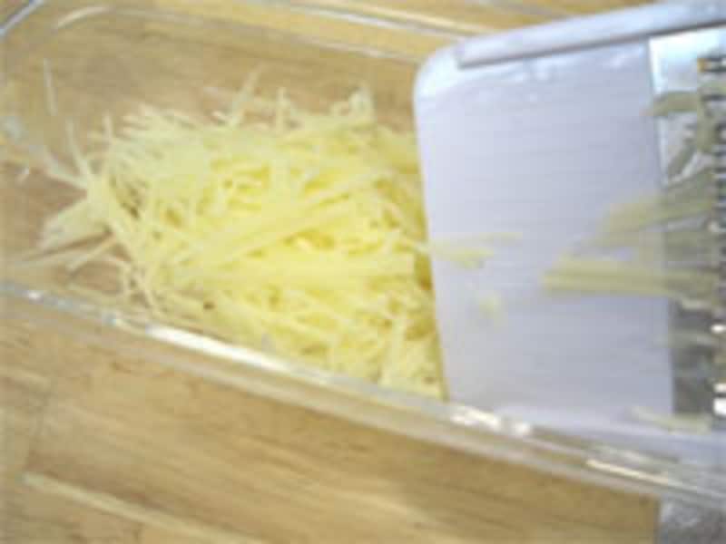 | 火の通りにくいじゃがいもも、千切りすれば調理しやすく。 |