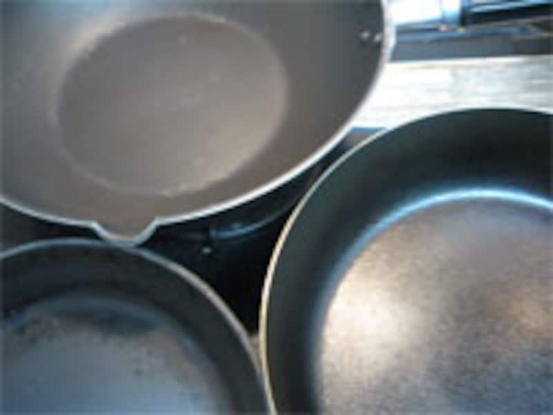 | 我が家の3つのフライパン。用途に合わせて使い分けています。 |