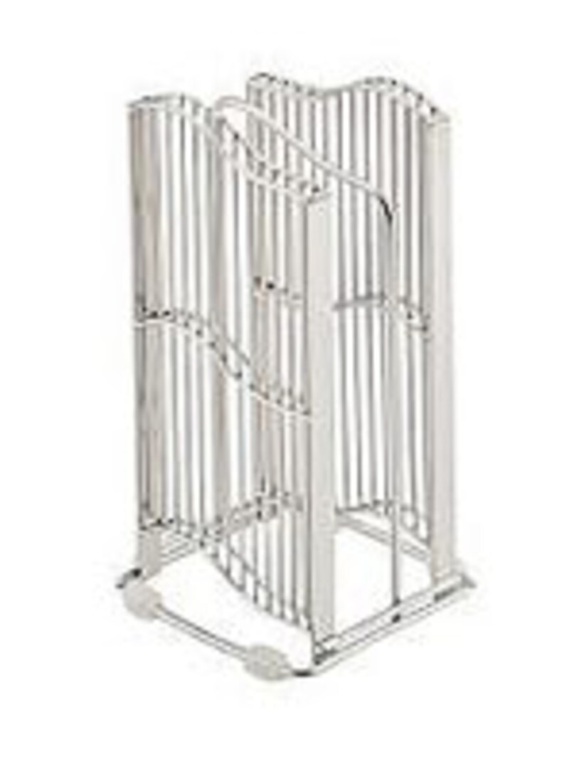こちらのスタンド、ステンレス製のすっきりとしたデザインながら、包丁4本にまな板2枚とたっぷり収納できます。まな板用の収納幅は20mmと35mmの2種類ですので、用途に合わせた2枚のまな板をコンパクトにしまえそう。