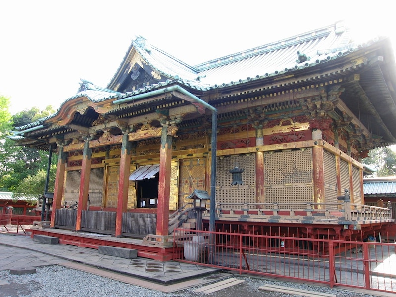 上野公園内にある東照宮も、小さいですが、外観も内部も大変立派な建物で、日光東照宮と同じように、左甚五郎の「登り龍、下り龍」も見られます。これは、徳川三代将軍家光と、家光が父のように慕っていた謎の老僧、天海僧正が建てたものです。![]() |