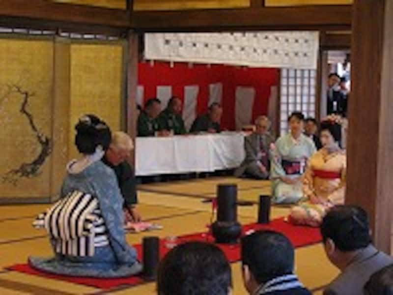 | 芸者衆も参加し、華やかにゲームが進行 |