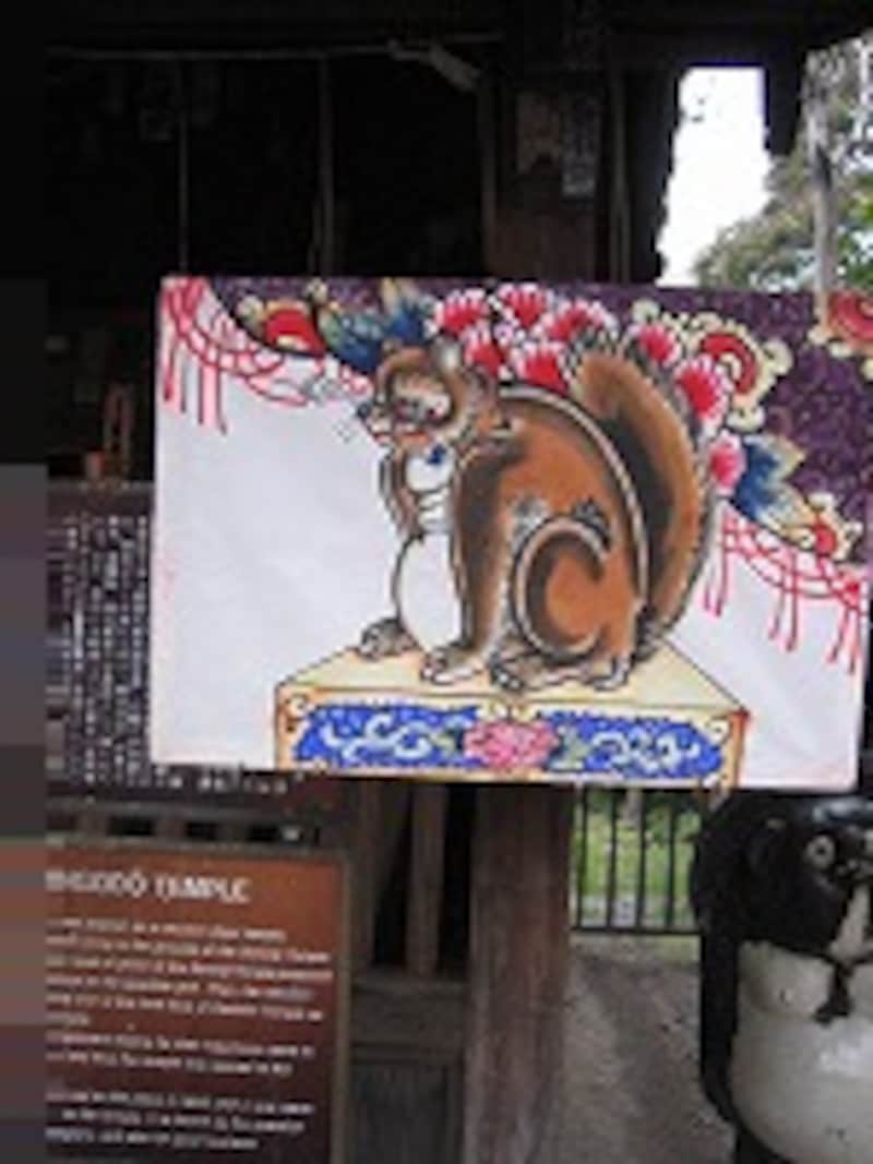 | 鎮護堂には、たぬきキャラの行灯もあります |