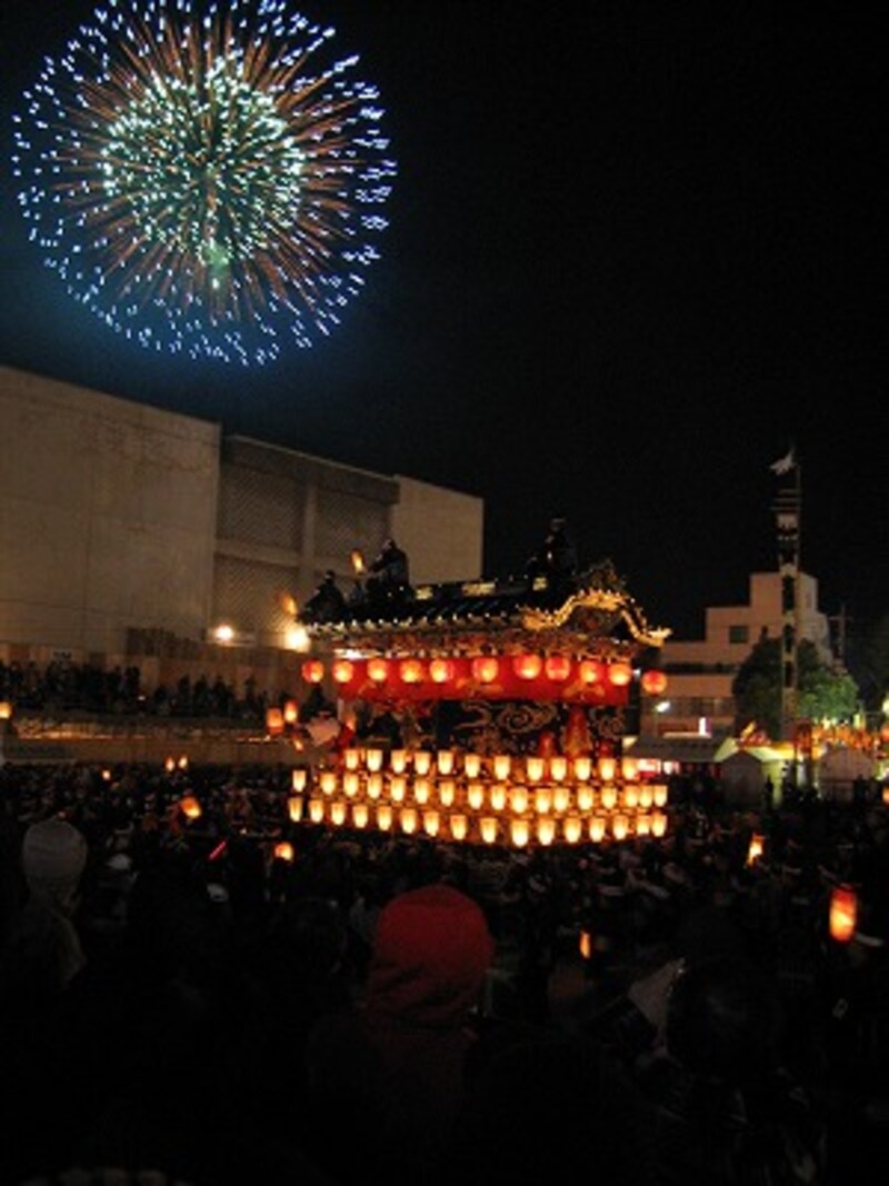 | おととしの秩父夜祭は、寒かったけれど、花火が美しかったです。それにしても、このごろのデジカメはすごいですね。初心者の吉田でも、夜の花火がばっちり撮れました |