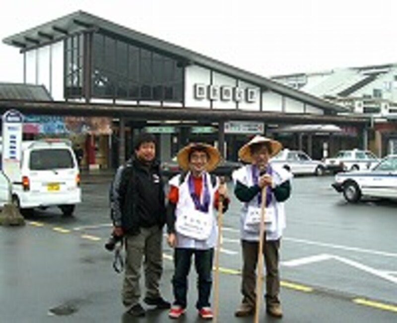 | 真ん中が福本さん、左が野坂さん、右は理事の仲本明彦さんです。これから、お笑い3人組(?)で秩父の視察を始めるところ |