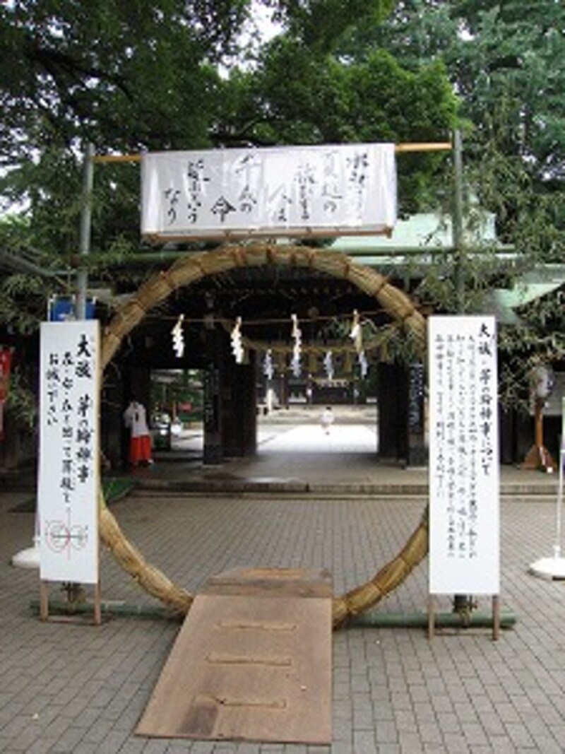 | 6月下旬、大宮八幡宮では、智の輪くぐりができます。夏の大祓いは6月30日 |