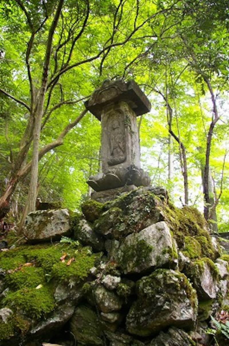 | 参道に立つ石塔や石仏は、昔の人々が歩いて登って来る際の道しるべの役割もしていました |