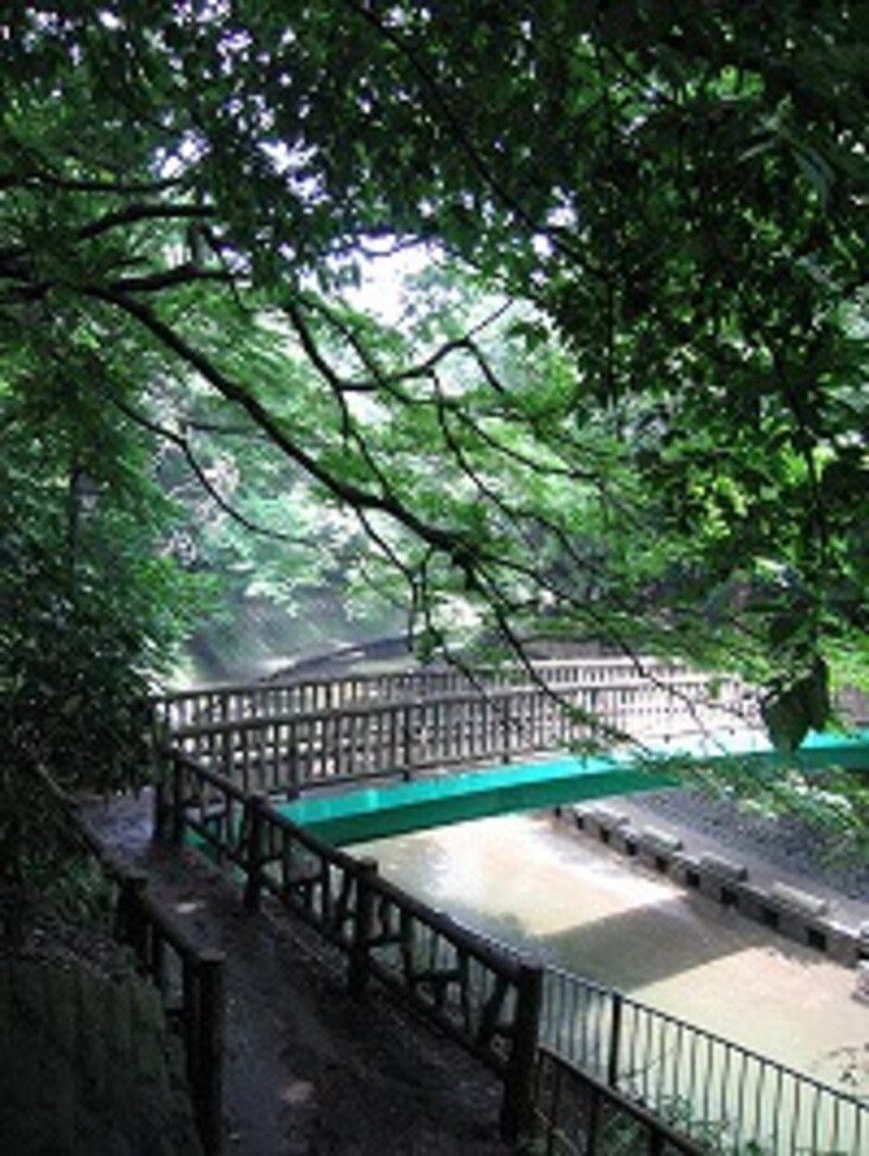 善福寺川の向こうは和田堀公園という池のある公園になっており、こちらも、木々が茂って、避暑地のような雰囲気です。朝夕には、ウォーキングの途中でひとやすみする人も多く、地元民たちの憩いの場となっています。
