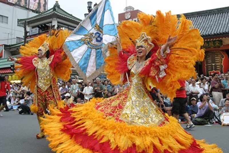 | 浅草のサンバカーニバルは、カラフルな外国風のお祭りです (写真提供、浅草サンバカーニバル事務局) |