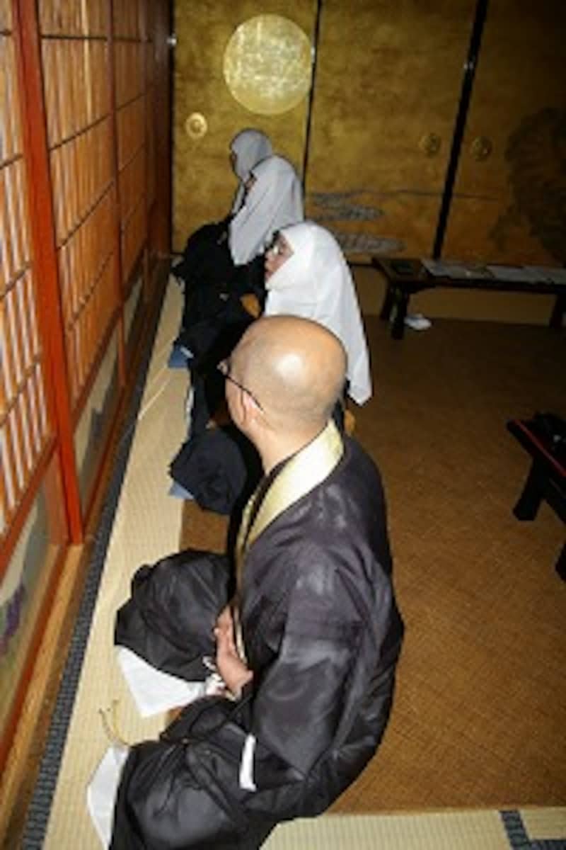 | 尼僧スタイルが完成しました。着物慣れした方々だが、さすがに暑さは隠しきれず |