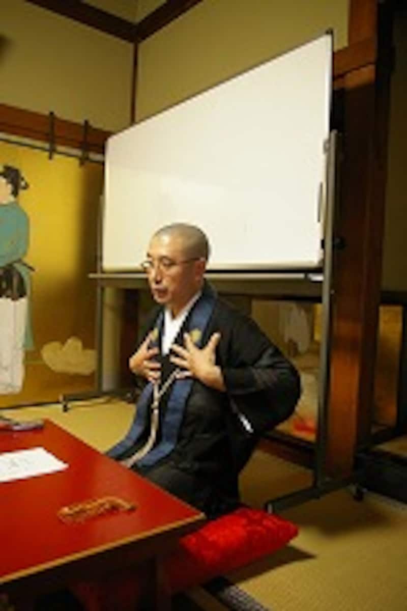 | 尼僧体験は、主に、この豪華なお部屋で行われます。聖徳太子の絵の上にかかっているのは、伊藤博文の書(ホンモノ)とか |