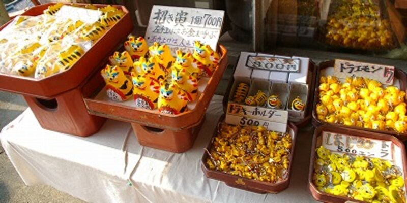 | 信貴山では、あちこちで寅キャラのお土産も売っています。招き寅がかわいい |