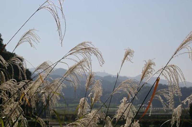 コスモスは強い花で、それほど手をかけなくてもたくさん咲きます。でも、どこか寂しげなところもあり、初秋の奈良に似合います。わたしのお勧めは、まず飛鳥。飛鳥は言うまでもなく日本最古の都で、地中には、まだまだ遺跡がたくさん眠っています。そのためか、今も高い建物はほとんどなく、どこまでも田園が続くのどかな場所です。自転車でのんびり走っていると、そこここで、こんなコスモスの群生に出会います。![]() |