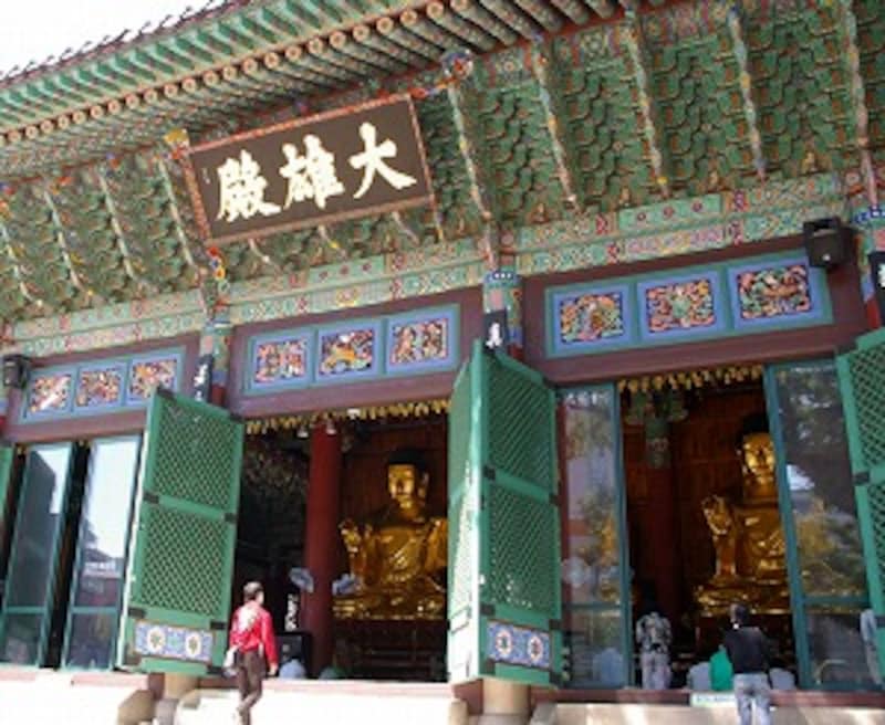 | こちらは、韓国の多くの寺の頂点に立つソウルの曹溪寺(チョゲサ)。やっぱり仏像は金ぴかです |
