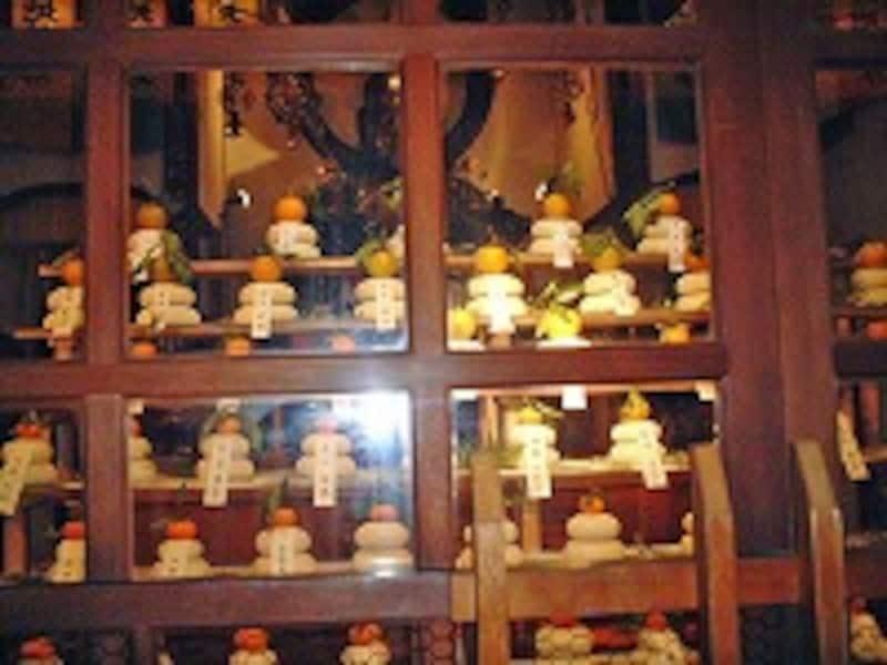 | 料理屋さんの「いもぼう」では、鏡餅と一緒に海老芋が飾られます |