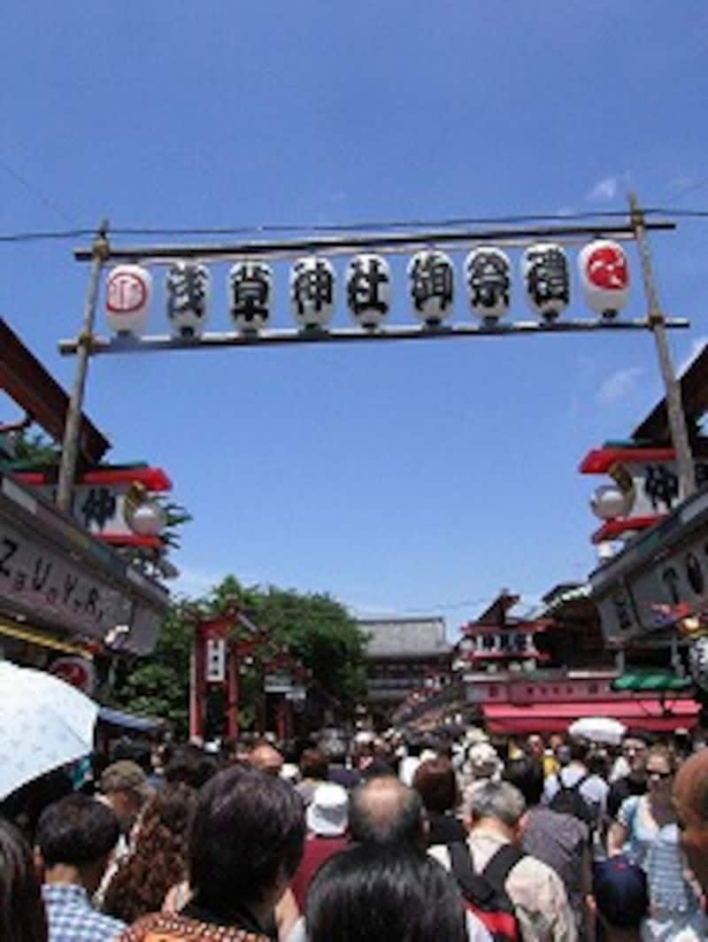 | 浅草寺境内には浅草神社もあり、両者渾然一体となって、三社祭りが行われる |