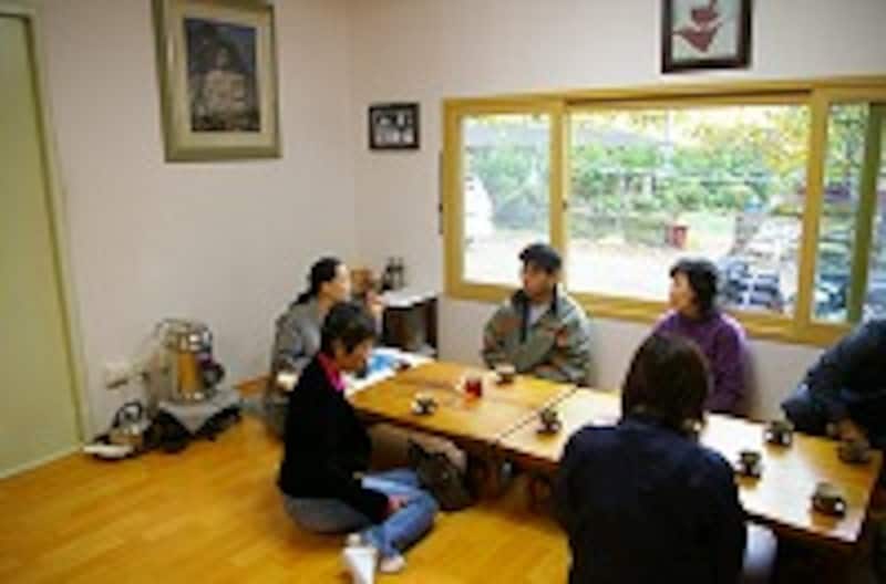 こちらでは、お寺の方が、お茶に招待してくださいます。この写真では、禅武道の達人で、韓国の伝統舞踊の踊り手でもある女性が、いろいろと面白いお話をしてくださいました。その後、ご住職のお話も聞きました。日本の宿坊では、ご住職はお忙しく、宿泊者と一緒にお茶を飲んでくださることはあまりありません。韓国語と片言英語なので通じにくいけれど、こうしてお寺の方々と触れ合えるのは嬉しいことです。