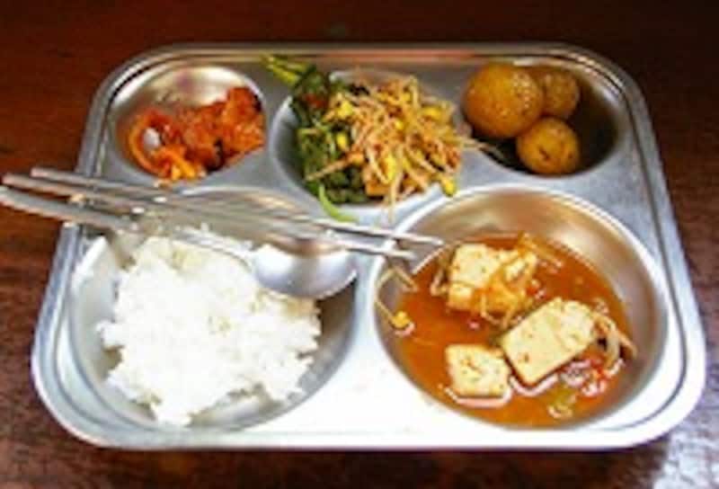 | これは骨窟寺のものではないが、だいたいどこのお寺でも、食事はこんな感じ |