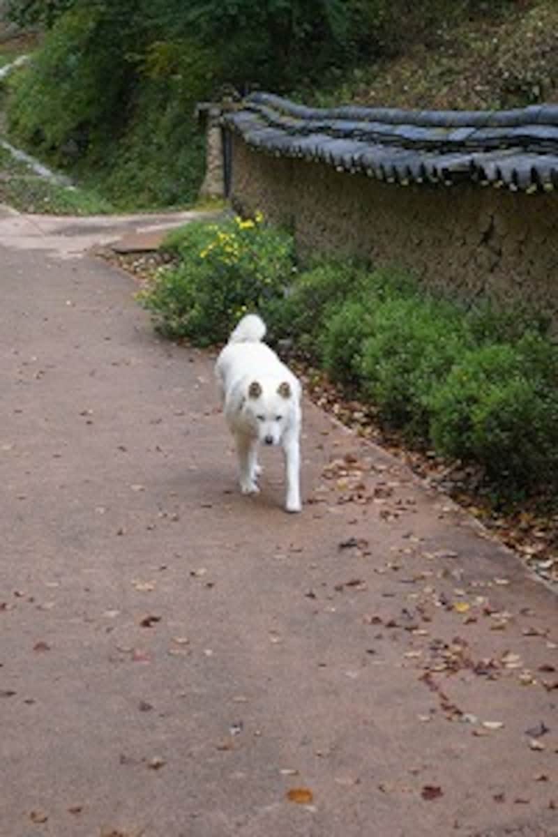 | 食事風景の写真がないので、代わりに、骨窟寺のアイドル犬の写真を載せときます |