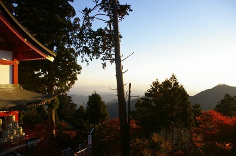 お寺の宿坊に泊まれば、暗いうちから起きだして、お経や坐禅など、朝のお勤めに参加するのがお約束です。しかし、御嶽山の宿坊でも、ちゃんと朝のお参りが行われます。夜明けとともに起き、山道を少し登って御嶽神社に行くと、本殿の中に若い神主さんがおられ、祝詞を上げてくださいました。![]() |