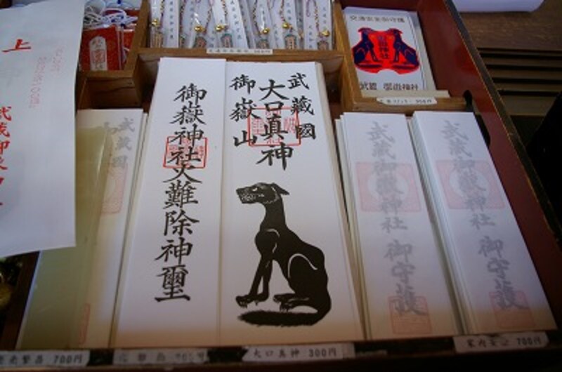 社伝によれば、御嶽神社は、神代の昔から霊山として信仰されていたそうです。ヤマトタケルノミコトが東征する際、この山の白いオオカミの先導によって難を逃れたとの言い伝えから、今でも、御嶽神社境内には、オオカミの像があちこちにあり、お札も、オオカミの姿をデザインしたものです。昔、このあたりの山には、本当に、たくさんのオオカミがいたのでしょう。![]() |