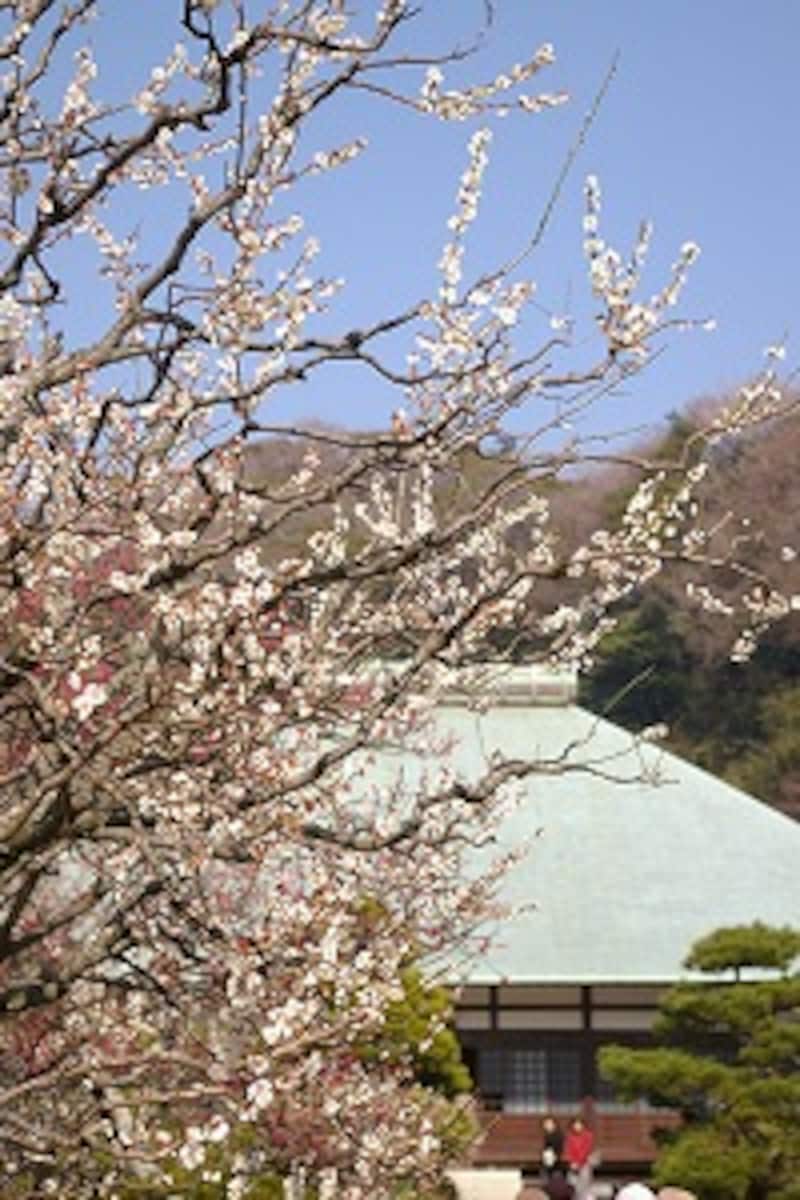 こちらの神社は、道真終焉の地に建てられた太宰府天満宮と京都の北野天満宮と並ぶ、日本三大天神社のひとつです。しかし、他の二つとはかなり規模が違い、山影にひっそり建っています。数ある鎌倉の神社仏閣の中では、さほど観光客が多い方ではないのですが、静寂が保たれており、なかなかいい雰囲気です。境内が小さいため、梅の木もそう多いとはいえませんが、こちらの梅は、鎌倉で一番早く、例年だと、1月下旬くらいから咲き始めるそうですので、気の早い方は、まず、こちらからお訪ねください。