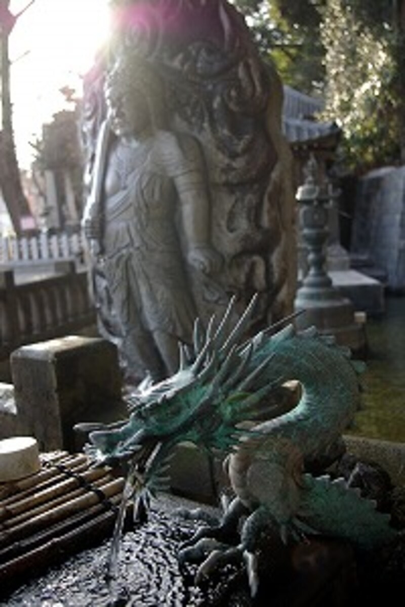 夢から覚めた円仁さんは、その神の姿を彫り、この地に祀りました。それが目黒不動尊瀧泉寺の始まりです。