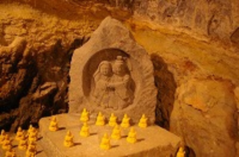 | 観音様だけでなく、長谷寺には各種の仏像がある。これは、弁天様の洞窟内で見つけた道祖神 |