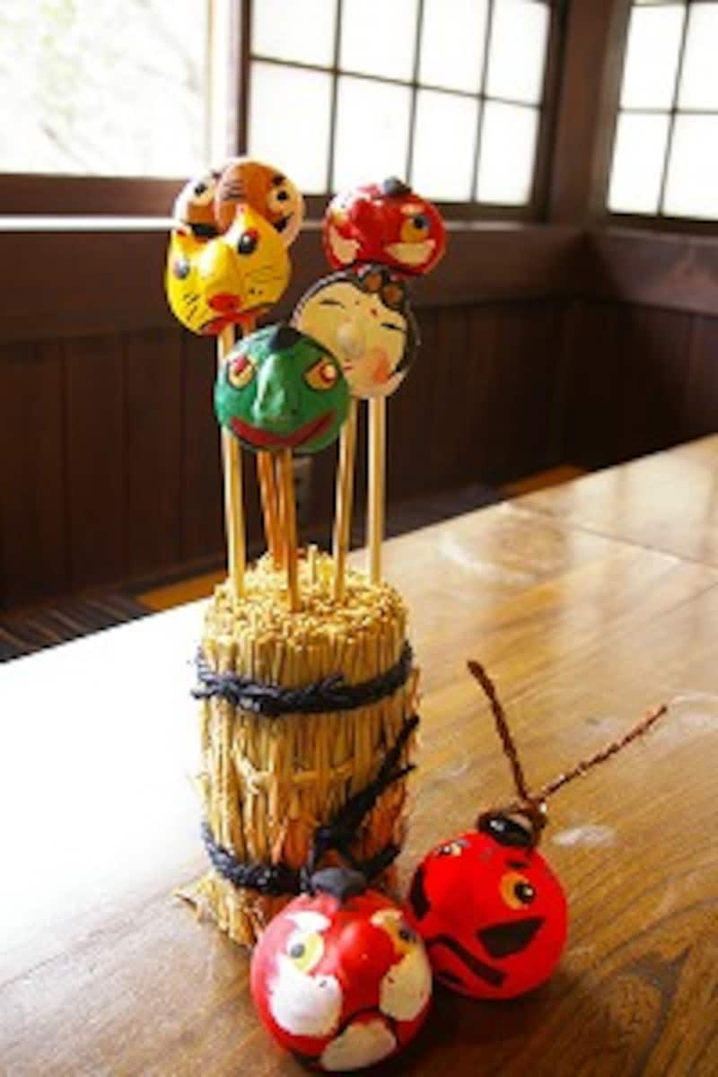 | 鞍馬、雍州路のご主人が作る鞍馬の郷土玩具をアレンジしたお土産。牛若丸、弁慶、天狗の顔がある |