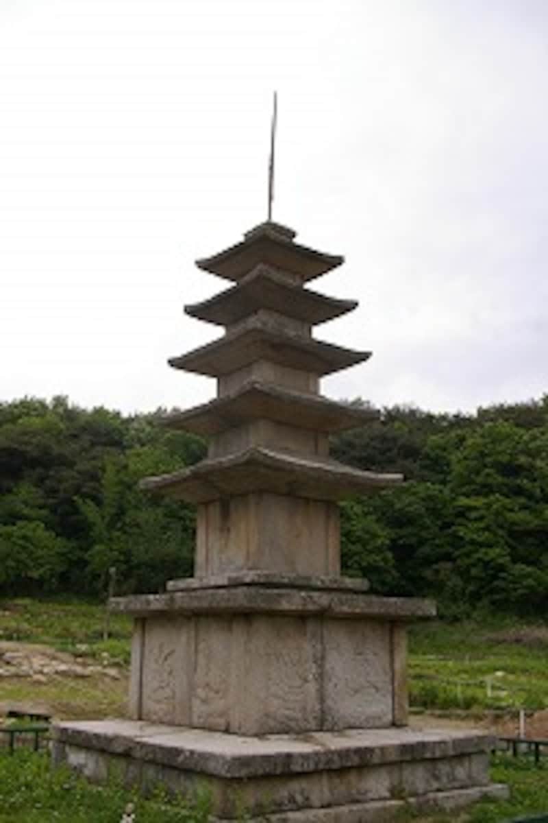 | 韓国では、こんな形の石の塔をよく見かけます。日本の寺にはない形 |