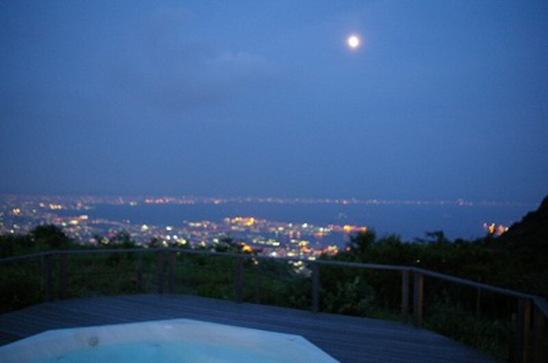 | 月と夜景を眺めながらジャグジーで体を伸ばす。これぞ天上の極楽 |